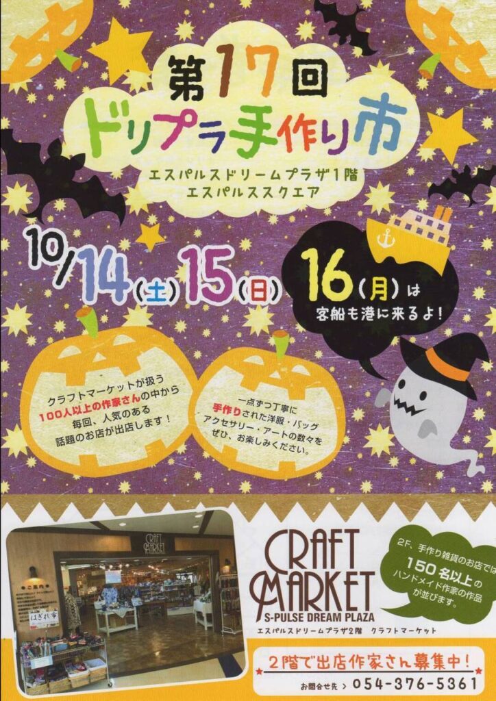 14日(土)15(日)16(月祝)は、ドリームプラザ1階エスパルススクエアにて、手作り市開催です。