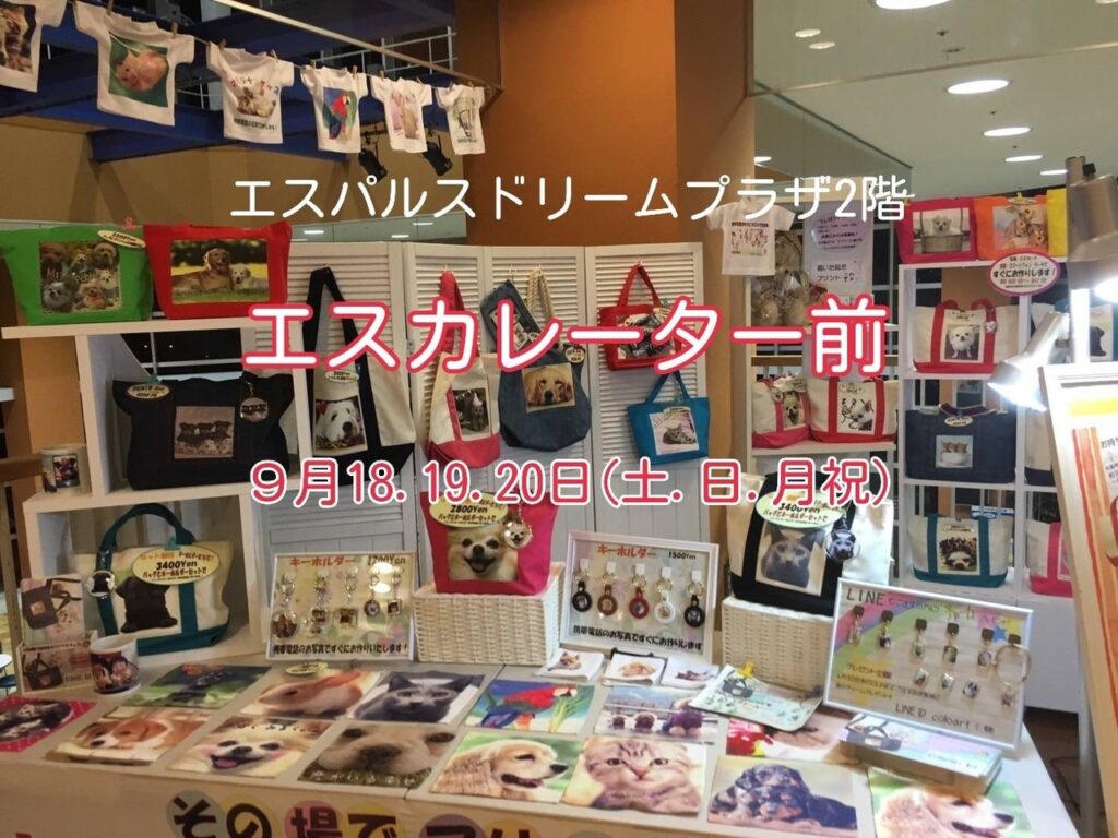 明日18日土曜日より、20日月祝日まで、エスパルスドリームプラザ2階のエスカレーター前にて、オリジナルグッズ製作販売いたします。