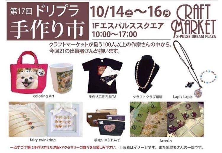 10月14日(土)~16日(月)エスパルスドリームプラザ1階エスパルススクエアにて、手作り市が開催されます!素敵なお写真お持ちになって、手作り市に遊びに来て下さい☺ -