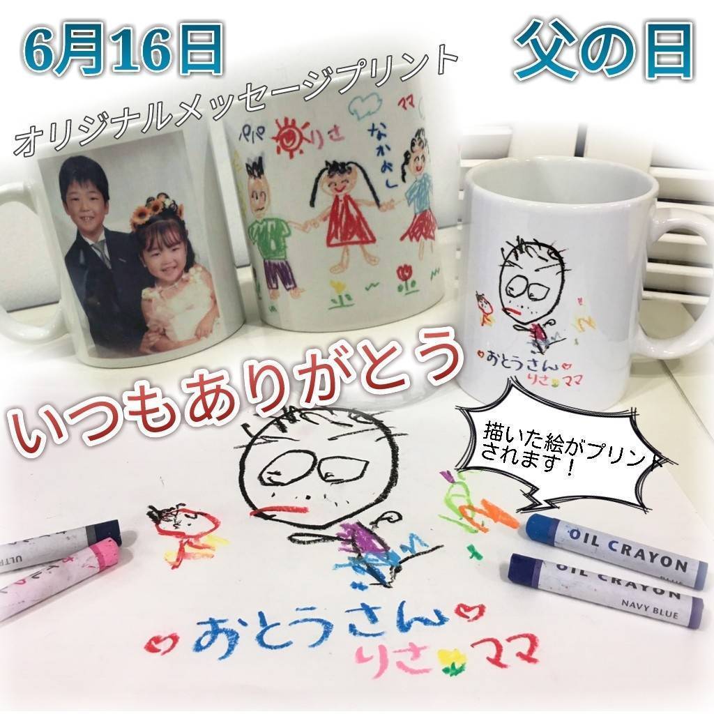 6月16日は父の日 大好きなお父さんに、感謝の気持ちを込めてオリジナルグッズをプレゼントしよう! A4サイズの紙にメッセージを描いて、オリジナルグッズカラーリングアートにご来店下さい。 もちろん、プリントは写真でもOK!お父さんの大好きな私や僕の... -