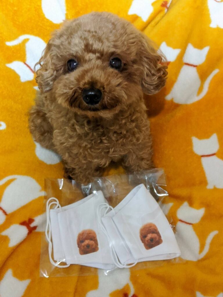 わたちゃんとてんちゃんのマスク出来上がりました。 まだ、ゴムの入荷が間に合っていなかったので、わたちゃんとてんちゃんのお母さんが、ゴムの替わりにリボンゴムを見つけてマスクにつけてくれました。 マスクをつけてもらいました。↓ 大きさ等参考にし... -