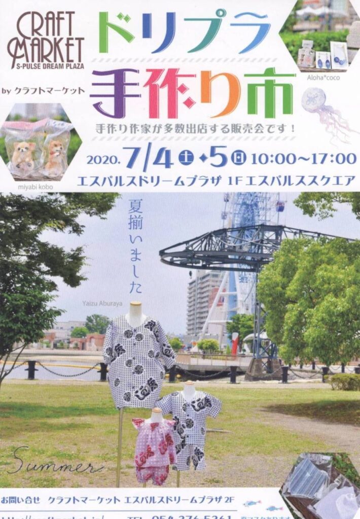こんにちは!7月になりました。7月のイベント出店お知らせします。 7月4日(土)5日(日)エスパルスドリームプラザ1階エスパルススクエアにてクラフトマーケット主催手作り市開催です。 夏用のドライ素材、通気性の良いマスク販売します。もちろんプリ...